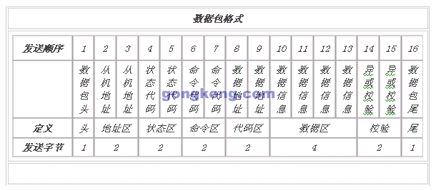 数据含义:数据帧从机地址至数据信息的异或结果。既第 2字节与第3字节异或的结果,再与第4字节异或,以此类推至第13字节。