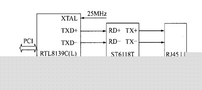 网络接口单元原理图如图3 所示, 以REALTEK的RTL8139C(L)以太网控制器为核心,经以太网变压器ST6118T 和RJ 45 插座,通过双绞线连接到局域网. RTL8139C(L) 接口和PCI2.1规范完全兼容,可以很方便的挂在TriMedia 的PCI 总线上. 以太网接口把视频编码及协议处理后的数据按以太网的数据格式打包传送到以太网,同时自动监测接收端的数据变化,把接收到的数据拆包,传送到TM1300 (2) .