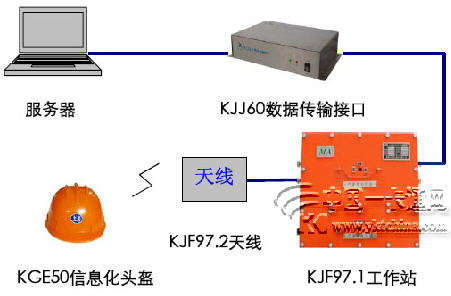 计算机,KJJ60数据传输接口,KJF97.1井下分站,KJF97.2天线,KGE50信息化头盔.