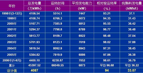 纯低温余热发电技术在中国海螺宁国水泥厂4000t/d水泥生产线上率先获得了成功应用。截止06年9月底累计发电量4.54亿度,创经济效益2.27亿元,减少二氧化碳排放量36.3万吨,减少60万吨标准煤耗,节约了能源保护了环境。