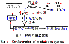 光纤Bragg光栅(FBG)传感器是以FBG作为敏感元件的功能型光纤传感器,有广泛的应用领域。当该传感器受温度、应变等外界参量的作用时,Bragg波长会发生相应的漂移,因此,研究FBG传感器的关键问题是如何精确测量FBG反射波长漂移量。传统上一般应用光谱仪解调系统,它体积大、不易携带、不利于现场使用。近年来出现的微型光谱仪体积小、价格便宜,但其光谱分辨力只在0.1 nm数量级,远远达不到FBG解调需要的pm级的分辨力。