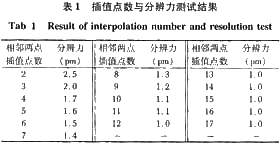 为了研究插值-相关谱法中,在一定的条件下,最好插入多少点波长分辨力最高的问题,在上面的实验系统中,将每相邻点之间的插值点数从2增加到17,得到如表1。