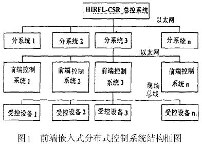 兰州重离子加速器冷却存储环工程(HIRFL_CSR) 控制系统是一个由CSR 电源系统、注入引出系统、内靶系统、真空系统、电子冷却系统等多个分系统组成的多层分布式控制系统, 各分系统通过以太网与前端控制系统连接,其前端控制系统是以嵌入式计算机为控制节点的分布式控制子系统, 系统组成框图见图1。