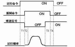 最佳的控制时序如图2所示,变频器接收到运行命令后,先进入零速运行过程,延时T1,保证电机励磁达到稳态后打开报闸,同时变频器开始运行启动速度的启动速度保持时间T2后是高速、低速到零速,零速运行T3后,在保证惯性影响为零的情况下,关闭报闸,由于报闸抱紧需要一定时间,因此必须延迟T4后撤消运行命令。按照此时序,可以保证启动和停车均有理想的舒适感。在艾默生TD3100变频器中,T1由F7.00设定,T2由F3.01设定,T3由F7.01设定,T4由控制决定,如果控制器延迟时间不够,TD3100变频器将自动延长命令保持时间。