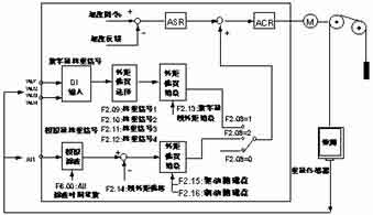 对于1.75m/s以下的中低速电梯,由于运行速度较低,基本不需要启动补偿就可以达到比较满意的程度。对于1.75m/s以上的中高速电梯,如果启动舒适感要求比较高的场合,就必须添加称重装置,进行启动转矩的补偿。一般有两种称重装置,开关量检测和模拟量检测方式。对于开关量检测具有成本低,但只能够做到有级,一般安装4个开关,可以在空载和满载之间实现任意4点的准确补偿,但是由于是有级补偿,还不能够做到理想的程度。模拟量传感器可以实现无级补偿,但是存在的问题是模拟量传感器往往随着电梯的使用,其输出会发生偏移,造成补偿错误,效果有时会比不补偿还差,因此需要定期对补偿增益进行调整。艾默生TD3100电梯专用变频器启动转矩补偿原理如图所示