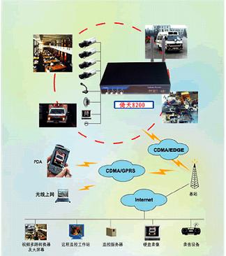 · 终端用户可利用计算机、PDA等有线或移动监控、监视设备、通过CDMA/EDGE来观看远程监控设备实时传回的现场图像, 也可通过因特网来观看图像。