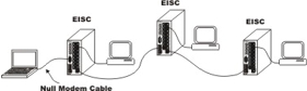 The EISC16 has an internal crossover port 16X which is used to connect to another switch or hub using straight-through cables. If port 16X is used, port 16 cannot be used on the same switch. All twisted-pair segment lengths are limited to 100 m. The EISC has an EIA-232 console port wired as a DTE. In order to connect to either a Windows-based desktop or laptop PC for configuration purposes, a null modem cable not exceeding 50 ft. in length must be used. |
