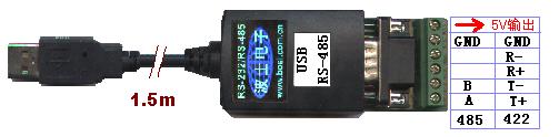 USB485主要是为USB的远程工业通信而设计的,由于转换为RS-485或者RS-422接口所以通信距离增加到了1200米(9600bps时)。同时增加了一个5V供电脚这样可以对某些外接的仪器或设备供电。