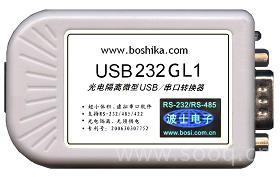 波仕电子USB232GL1产品具有以下基本性能特点:光电隔离且无须外接电源,无须供电而且还可以对外输出隔离的5V电源,串口为RS-232/RS-485/RS-422通用,自动识别串口号。驱动程序同波仕USB232、USB485转换器。