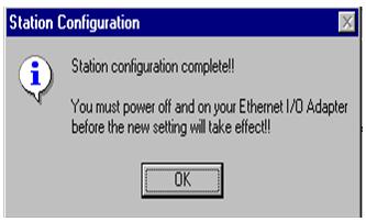 (4)更新IP地址。SC-501/DE在STOP模式下, 通过 【Update Station】按钮,把修改后的配置参数写入到SC-501/DE。当出现右图提示后则参数写入成功。建议:更新SC-501/DE参数后重新上电。