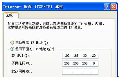 进入计算机操作系统【控制面板】,选择【网络连接】,右击网卡对应的网络连接图标,选择【属性】。进入属性表,选择最下端的Internet 协议(TCP/IP),点击【属性】,配置IP地址和子网掩码。