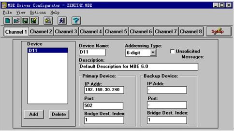 在IFIX的I/O设置中,填入上面配置的地址,(以读取的IP为准),即为SC-501/DE的IP地址,PORT口缺省为502。