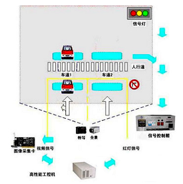 电子警察视频系统主要应用以工控机为控制中心,配合视频卡+数码相机完成视频数码闯灯自动记录系统: