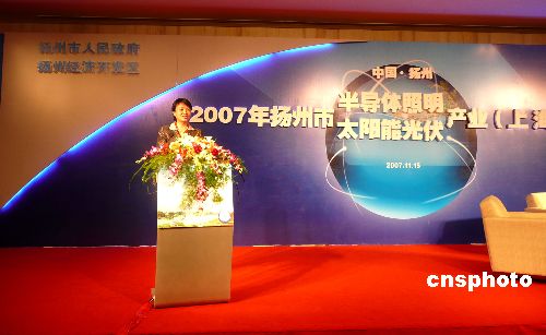 十一月十五日下午,扬州市政府在上海举办“二OO七扬州半导体照明和太阳能光伏产业(上海)招商推介会”, 扬州市市长王燕文介绍说:扬州已经获得国家有关部门批准,被确定为国家级半导体照明产业基地,相信五到十年后,建成国家级太阳能光伏产业化基地。 |