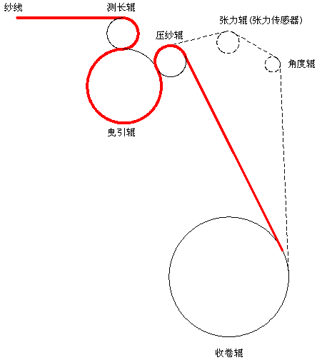 收卷线速度保持与主线速度同步且可调,在收卷恒速、调速及启、停(收卷中途15KW主电机暂停,便于处理问题)过程中须保持收卷纱线的张力恒定。