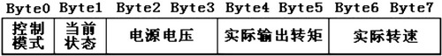 四个电机控制器向中央控制器反馈当前状态信息的CAN消息数据域结构如图4所示。