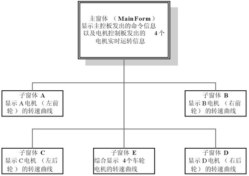 这里,主窗体是启动窗体,子窗体A、B、C、D、E在主窗体启动时并不显示,通过主窗体上的相应按键可以控制子窗体的启动以及关闭,亦即显示和关闭各车轮转速曲线。
