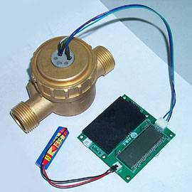 本方案通过把流体流动转换为旋转运动实现对流体流量的检测。采用附有金属膜的叶轮实现这种转换,管道中的流体推动叶轮的不断旋转,其转速直接决定于流体的流速。此机械转动信号经无磁非接触式传感器将其转化为电信号送至微控制器的 SCAN IF 模块, SCAN IF 模块计算出 转动(流体流量)和它的方向。