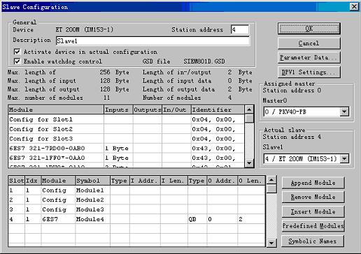 请注意:Slot1-3为空槽模块配置,从Slot4开始才是实际的IM153-1后面的模块。