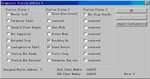 选择Online菜单的StartDebugMode,然后选择IM153-1从站,鼠标右键选择DeviceDiagnostic进行从站诊断,下图为IM153-1正常工作时的诊断画面: