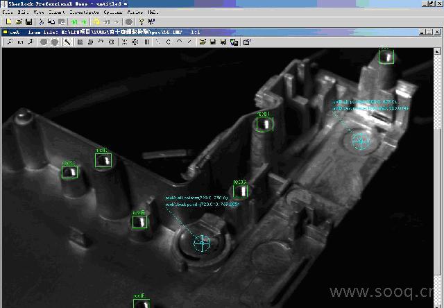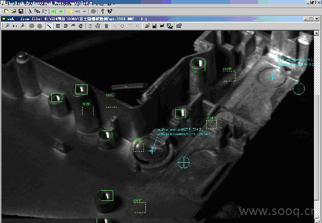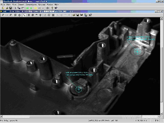 所要检测的物体为金属铸件,在铸件的规定位置都有M2螺纹安装孔。视觉系统的任务就是检测这些安装孔是否存在螺纹。
