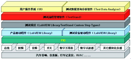 由以上可见,在汽车电子产品测试中,所采用的测试设备是一种需要根据被测产品的不同而快速灵活定制、能够提供丰富的测试功能、便于本土工程师快速开发及维护的软、硬件平台。