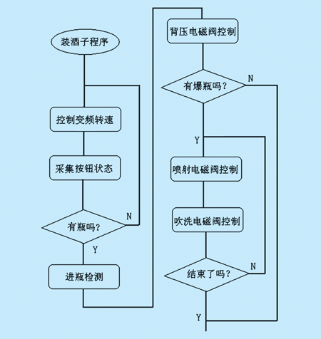 回转酒缸通过压力往瓶内背压装酒的过程中,空瓶在背压后,可能由于瓶子本身裂纹等原因导致突然爆瓶,这就需要检测出爆瓶瓶子的位置,在这个瓶位的位置进行打开吹扫电磁阀,喷出压缩