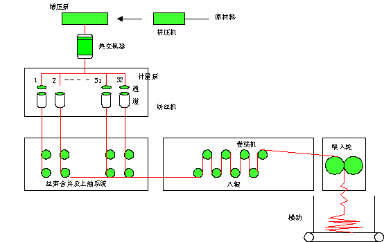 前纺部分主要是由挤压、溶体输送、纺丝、卷绕等部分组成。
