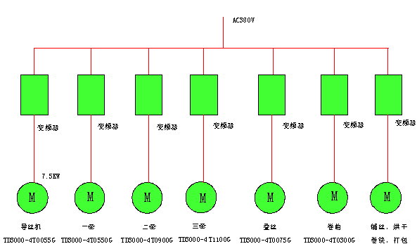按照以上思路,后纺部分牵伸段的变频器线路图如下: