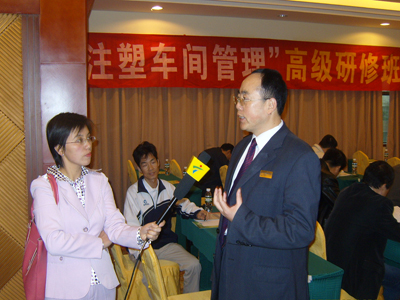广东电视台获悉华南注塑技术管理顾问有限公司为推动注塑行业的进步和发展付出很多的努力,并产生了很大影响力后,于2007年12月20日派多名记者来到华南公司在东莞宏远酒店举行的“注塑车间管理”课程培训现场进行采访。果然华南公司名不虚传,不仅听课人数多,而且余老师讲课十分吸引人,培训过程中经常响起学员们的掌声,广东电视台的记者还专门采访了余老师。