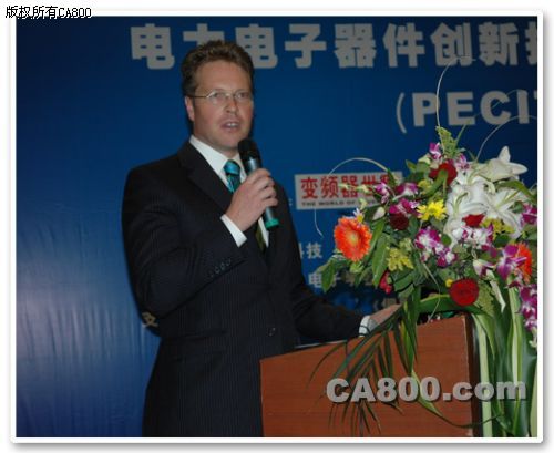作为本次会议的协办单位,德国菲尼克斯电气集团DCT亚太区产品经理Paul Lennox 代表菲尼克斯电气致辞,他认为,电力电子市场是科技含量比较高的市场,需要菲尼克斯以及其他电力电子器件制造商的共同努力,通过创新力的驱动,设计生产更具紧凑化、模块化、节能化的产品。Paul在大会上介绍了菲尼克斯公司的历史、现状、企业架构及其全球整合和优势互补的战略,“不仅为客户提供产品,更要成为客户的合作伙伴”更是展现了其成为中国产业最信任全球和本土品牌的愿景。