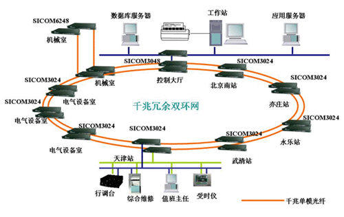 | 京津线是中国高速铁路网络示范项目,京津线从北京南站到天津站全程约116公里,基础部分设计时速350公里,初期运营时速300公里。该线路将在2008年奥运会举办前投入运营。西门子与两个中国合作伙伴(中铁电气化局集团有限公司和中国铁路通信信号集团公司)一起,共同为本项目提供信号和调度集中、通信、牵引供电和接触网,系统集成以及总体项目管理。东土公司在此项目中提供了符合IEC61850规范的千兆二层/三层工业以太网交换机SICOM系列产品应用于信号控制系统(CTC)。 信号控制系统(CTC)是调度中心对某一区段内的信号设备进行集中控制、对列车运行直接指挥、管理的技术装备。它是以列车运行调整计划控制为中心,兼顾列车与调车作业的高度自动化调度指挥系统。CTC系统采用计算机分布式网络控制技术、信息化处理技术,将列车运行调整计划下传到各个车站自律机自主自动执行;在列车运行调整计划的基础上,解决列车作业与调车作业在时间与空间上的冲突,实现列车和调车作业的统一控制。 CTC系统由调度中心子系统、车站子系统和调度中心与车站之间的网络子系统三部分组成。东土公司提供的SICOM6248、SICOM3048、SICOM3024系列产品分布在北京南站、亦庄站、永乐站、武清站、天津站,和2个机械室、3个电气室,组成快速的互为备份的冗余双环网,把车站的行调台、综合维修、受时仪、维修终端、仿真台、值班主任的数据传到调度中心,有效解决了调度中心和车站之间的网络通讯。 东土公司的SICOM系列产品为铁路信号控制系统提供了最佳通信解决方案,该产品所具有的实时性、高稳定性、高安全性、快速冗余、符合工业现场环境等特点满足了铁路信号控制系统对通讯产品的严格要求。 产品特点: SICOM系列千兆二层/三层工业以太网交换机为模块化设计,万兆/千兆/百兆接口可自由组合;符合IEC61850规范的工业四级电磁兼容要求;支持静态、动态、组播等多种路由协议;高性能的DT-RING冗余技术,倒换时间小于50MS;IEEE1588精确时间协议达到亚微妙范围内的同步精确度;支持SNMP、RMON网络管理,OPC模式监控等功能。 网络拓扑图: |