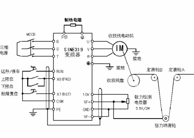 | 随着社会的不断发展,制造企业、加工企业对所需产品和设备的要求越来越高,功能更专业,操作更简单、更方便。 专门针对线缆制造行业、线缆机械设备制造行业,变频调速器专业制造商----深圳市正弦电气有限公司适时推出了其最新佳作----SINE319系列傻瓜型动力收放线专用变频器。该系列变频器功率范围为0.75-15KW,不需外部信号控制,完全独立于加工机械。使用时无需设定变频器参数(出厂值即为最佳参数),只需按照说明书正确接线,就可开机正常工作,也可在张力平衡杆的下限位、中点零位或上限位等任意位置开机工作。能自动识别收放线的转速和方向,自动跟踪收放线的线速度,且使张力平衡杆基本维持在动力收放线架的中点位置。无论是大盘、小盘、满盘、半盘、粗线、细线或是线速度高低,其张力始终能保持恒定。使用SINE319系列傻瓜型动力收放线专用变频器,只需要一个动滑轮绕线即可,从而使机械结构最简单化来节约设备成本。该系列变频器与电机同功率配匹使用时,不需要放大变频器的容量。 SINE319系列动力收放线专用变频器应用场合如下: * 线缆制造行业,加工机械加工完毕的线材,要用线盘整齐收卷。 * 加工机械在启动、停车、正常加工过程中,线材线速度是变化的,要求收卷机转速能自动跟踪加工机械的线速度。 * 收卷直径也在变化,收卷机还必须根据收卷直径自动调整转速,保证收卷机线速度和加工机线速度一致。 * 同样,当卷好的线材需要再次加工时,放卷机也必须自动跟踪加工机械的线速度,根据开卷直径自动调整转速,保持和加工线速度一致。 * 为了保证加工品质,在收放线过程中,必须保持线材张力恒定。 专业,是正弦人的强势!专注是正弦人成功的关键!相信正弦人的“专业+专注”,能为中国的变频器市场更添一份强大的活力! SINE319动力收放线应用接线图 |