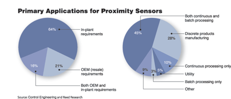 最近,由Reed Research Group进行的一项在线调查,研究了杂志数据库中的控制类专家进行了关于为工业控制系统选择、推荐和/或购买接近传感器的情况。在所有受访者中,64%的将接近传感器用于工厂现场应用,21%用于OEM,剩下的16%则兼而有之。