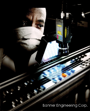 Barnner Enginnering公司最近推出了两款用于色彩监控的可视传感器:一款单片式的PresencePlus P4 Color Omni和另一款拥有一个紧凑型摄像头和一个安装在DIN轨道上的独立控制装置的PresencePlus Pro Color传感器。它们都采用了色彩匹配工具检测特定的颜色,且能够检测出任何的色彩变化。它们的特点是,色彩分辨率达到了752×480,采用了CMOS感光元件,并且包括了全部的PresencePlus 可视工具:定位,图案识别和计数,图形识别和计数和边缘、物体、误点、平均灰度测量。这类传感器能够在色彩是主要特征的场合得到应用,例如汽车发动探测(automotive fuse vertification),药片色彩匹配,LED位置校正以及色彩一致性监控。