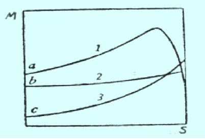 电动机的启动特性中,最主要的是它的起动力矩m,为了机组能转动起来,m必须大于拖动机械在n=0时的净负载力矩加上静摩擦阻力距。图1中曲线1表示异步机的力矩与转差m-s曲线,曲线2和3表示二种不同的负载特性曲线,为了能转动起来,必须要求a在b点或c点的上面,否则机组将转动不起来。
