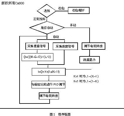 最后编制程序,如图2所示。自重效验:秤空转时皮带自身的重量;零点效验:秤空转时对零点的调整;称重效验:秤的挂码效验,比较理论值与实际值的偏差。注:0.95<校正系数K<1.05,否则认为传感器坏或有机械故障。