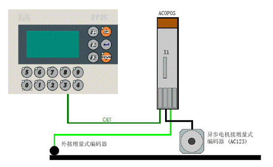 3.编码器输入:线速度测量的编码器可以直接接入到ACOPOS的第二个编码器模块,与伺服电机的编码器在驱动器内部进行直接比较,由于是在驱动器内直接比较,因此系统的响应速度非常快。