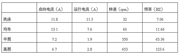 经过在100kg型洗衣机上的试验(变频器为TD2000-4T0110G,11kw),得出数据如下: