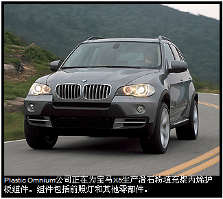 例如,Plastic Omnium公司已开始生产一种滑石粉填充聚丙烯护板组件,用于宝马X5。该组件包括前照灯和其他零部件,这家模塑商已与法国汽车制造商标致雪铁龙集团签订创新协议,共同开发未来的项目,包括护板、车顶、仪表板和前端组件。
