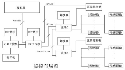上位机的作用是提供一个人机交互界面,使操作人员可以通过CRT和模拟屏直观的了解现场各工艺参数及故障报警,根据生产需要发出相应的控制指令。另外可以使用大容量存储器记录历史数据,为提高生产效率制定新的生产方案提供可靠的依据。控制核心采用PLC,其特点是体积小、功能多、可靠性高。编程后的PLC能够按照内部程序对系统进行实时监控,程序启停现场设备。