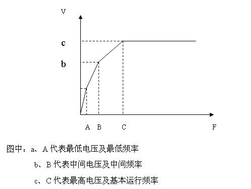 今年,为了进一步降低成本,提高产品竞争力,我公司又引进了新型变频电机,新型电机要求变频器提供手动V/F曲线调节功能,ENERSON公司又为我司研制了新型变频器,增加了多段V/F曲线功能。在工业洗衣机中,要求V/F曲线如下: