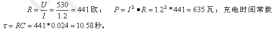 根据上例计算结果,如果粗纱机外挂电容为 0.024F,对0.024F电容充电电流希望控制