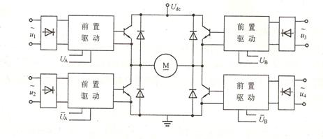 当驱动功率比较大时,一般桥臂电压也比较高,例如直接取工频电压,单相220V,或三相380V。为了安全和可靠,希望驱动回路(主回路)与控制回路绝缘。此时,主回路必须采用浮地前置驱动。图3所示的浮地前置驱动电路都是互相独立的,并由独立的电源供电。由于前置驱动电路中采用了光电耦合,使控制信号分别与各自的前置驱动电路电气绝缘,于是使控制信号对主回路浮地(或不共地)。
