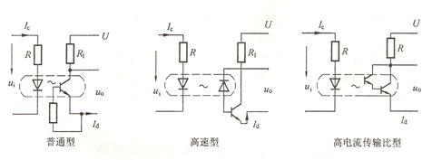 图中,普通型光耦的Ic/Id=0.1~0.3;高速型光耦采用光敏二极管;高电流传输比型光耦的Ic/Id=0.5;它们的上升延时时间和关断延时时间分别为tr,ts>4~5μs;tr,ts<1.5μs;tr,ts为10μs左右。