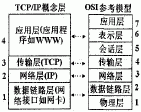 TCP/IP的结构将网络分成四个层次,分别是应用层、传输层、网络层和数据链路层。这将国际标准组织(ISO)制定的开放系统互联参考模式(OSI)的七层传输参考模式中的一些层面合并,二者之间映射关系如图1所示。