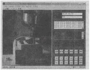 图6为开发的网络控制系统在局域网内对机床加工进行网络监控的演示情况。通过试验可以看出,控制命令和状态数据的传递实时性较好,可以满足实际控制的需要;加工状态的图像显示刷新速度较慢,实时性稍差,图像显示具有跳跃性,需要进一步提高图像显示的流畅性。