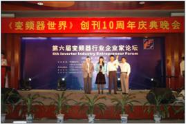 2008年1月12日,在由《变频器世界》和中国自动化网举办的“2007年度中国变频器行业年度评选颁奖大会”上,国际知名变频器品牌--艾默生工业自动化(中国)(简称艾默生IAC)一举荣获“2007年度中国低压变频器市场十大国际品牌”、“2007年度中国变频器应用电梯行业主流品牌”、“2007年度中国变频器应用市政行业主流品牌”三项大奖。本次评选活动主题为“打造诚信品牌,发展变频产业,构建和谐社会”。旨在肯定和鼓励为中国变频传动事业做出贡献的优秀变频器企业,推动变频器行业持续健康发展。