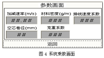退火的速度要求从空芯卷径到满卷卷径的过程中,线速度保持恒定。这是为了保证退火的均匀,同时也使排线比较均匀。为了实现这样的效果,需要实时地计算卷径,其方法是通过每层进行叠加的方式进行,因此在HMI上需要让操作者输入微丝的线径、空芯卷径。当排线从一边排到另一边时,收卷的卷径增加2倍微丝的线径。所以在生产过程中,对排线电机从一端到另一端运行的次数要进行累计,然后将得到的该参数乘以2再加上空芯卷径,就能够实时地算出当前的收卷卷径。因为线速度是在HMI上设定的,在整个生产过程中始终保持恒定,因此可知,随着收卷卷径由小到大变化,收卷电机的转速是逐渐下降的。反应到变频器上就是运行频率是逐渐降低的。