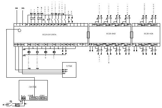 主模块选用EC20-2012BRA,20点输入12点继电器类型输出。模拟输入模块采用8通道的EC20-8AD,模拟输出采用4通道的EC20-4DA。